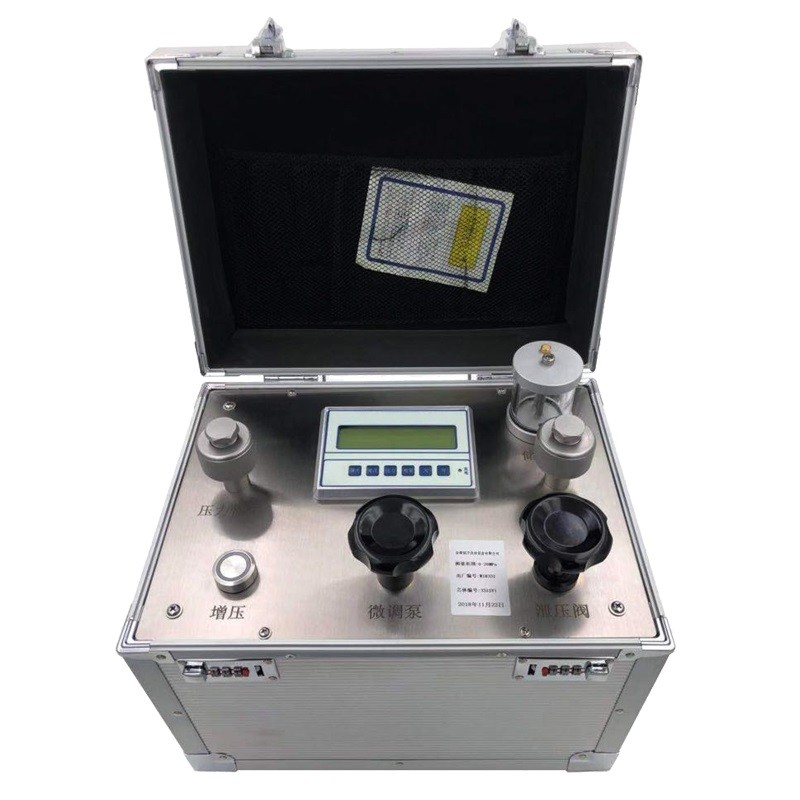 智能电动压力校验台为交流供电的便携式仪表,压力调节通过 按钮调节,使用简单,压力稳定。