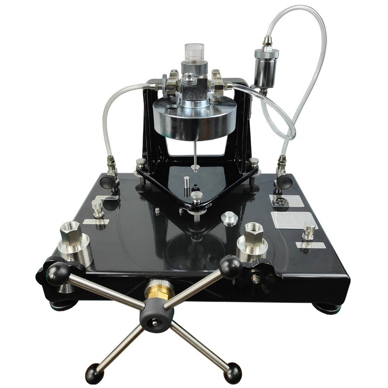 活塞和活塞筒经精工研磨,其圆度误差和间隙极小 ,工作介质采用低黏度的癸二酸脂,因而极大的提高活塞转动延续时间,也就相应减小活塞下降速度,提高活塞鉴别力。活塞工作位置采用目测监测,具有醒目、准确的优点。砝码已经进行压力形变系数和当地重力加速度的修正,0.02级以上的进行消磁处理。送检时只需送检活塞测量系统,体积小、重量轻。