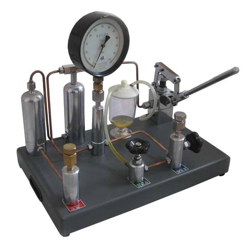 THLL126氧气表压力表两用校验器(压力校验泵)应用帕斯卡原理,采用手动杠杆作用下的柱塞产生压力,设置二级油水隔离装置,基本上能检定市面上的大部分压力表,应用范围大、性能稳定、可靠、操作方便。